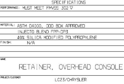 The Injectoblend™ DP3 material meets FMVSS302 and Chrysler part specific outside design and development (ODD) performance criteria.