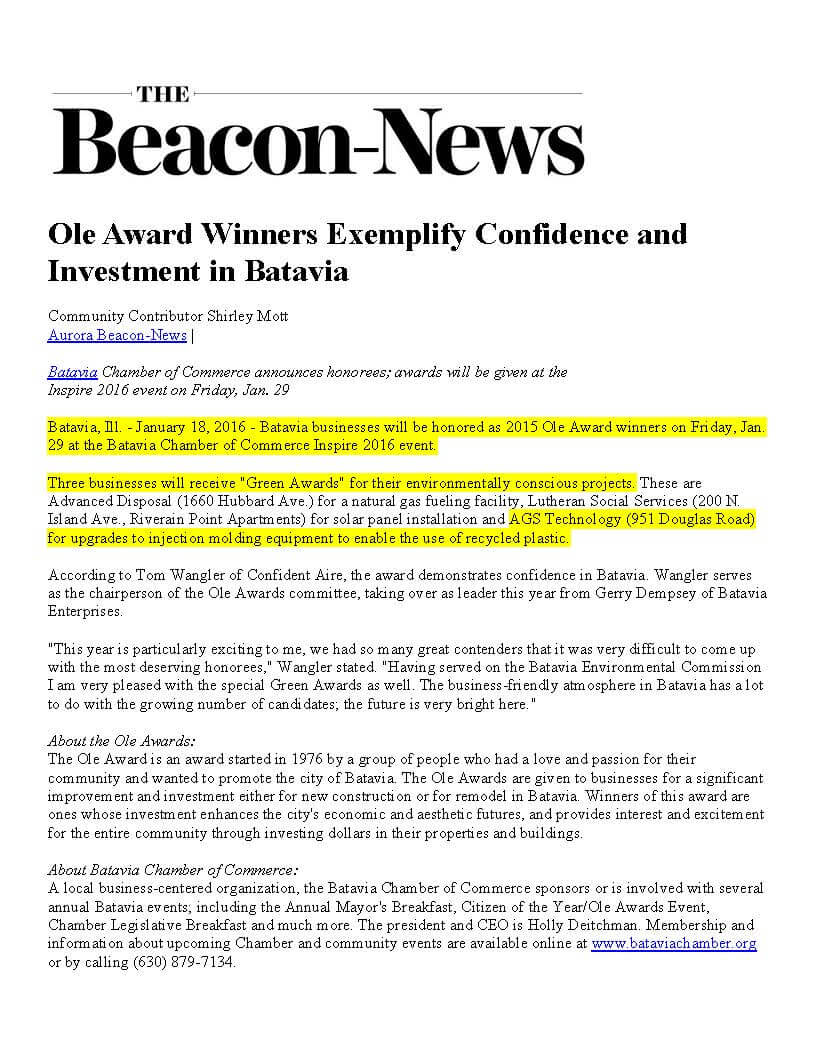 Ole Award Winners Exemplify Confidence and Investment in Batavia